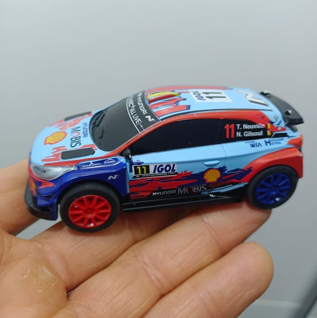 Coche de slot Hyundai i20N para Scalextric Compact. - Modelo: Hyundai i20N. - Escala: Carrera GO!. - Decoración: Hyundai Mobis.