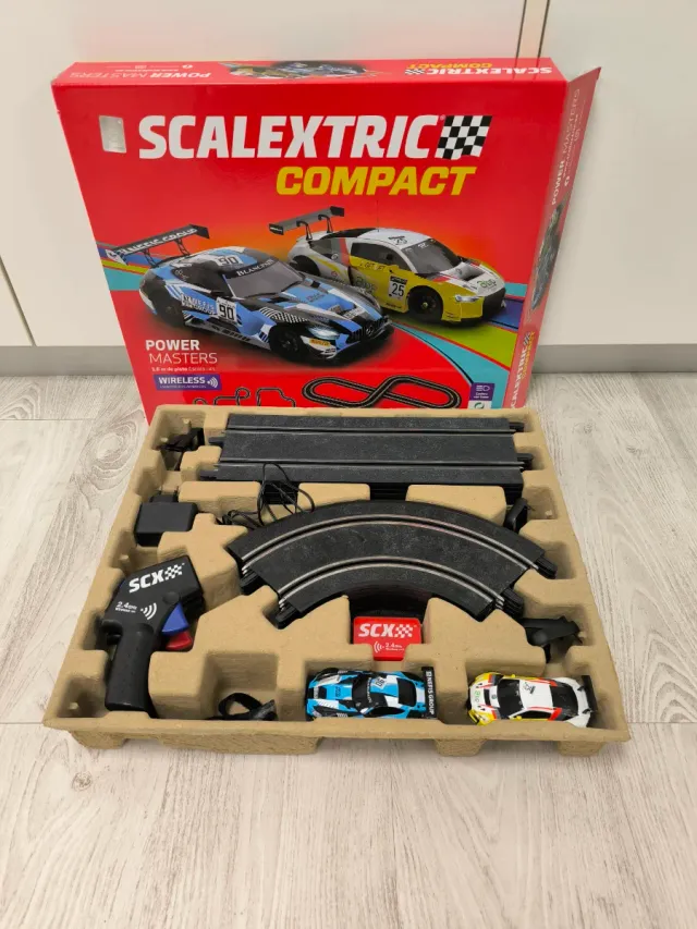 Detalles del productoCircuito de slot Scalextric Compact Power Masters.