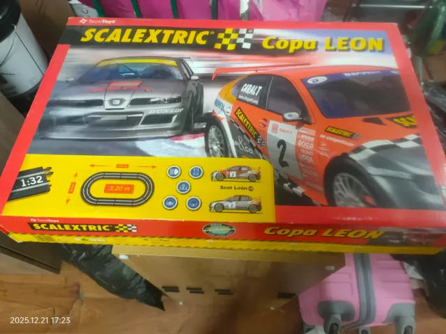 Circuito de Scalextric de la Copa León. Completo,apenas usado - Escala 1:32. - Longitud de pista: 3,20 m. - Incluye dos coches Seat León.