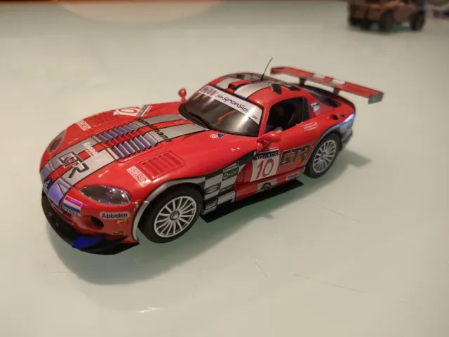 Detalles del productoCoche de slot Scalextric Fly Dodge Viper GTSR en color rojo.