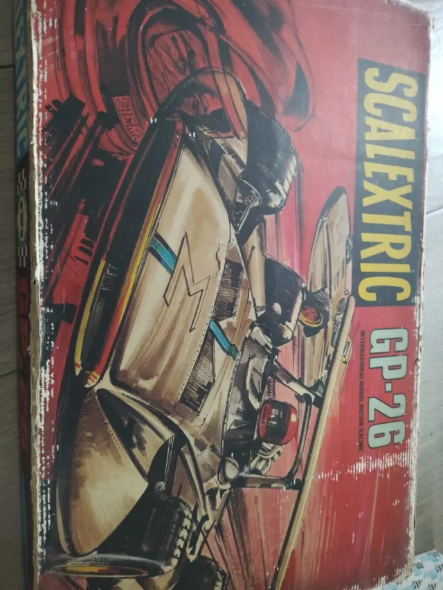 Caja original de Scalextric GP-26. Sin coches - Diseño clásico de carreras. - Ilustración detallada del coche GP-26.