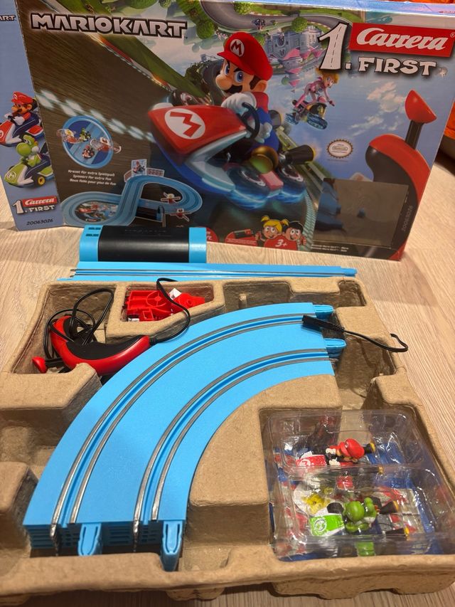 Circuito de carreras Scalextric Mario Kart 1 Carrera. - Incluye dos coches de Mario Kart. - Pistas de color azul. - Mandos de control. NO HAGO ENVÍOS