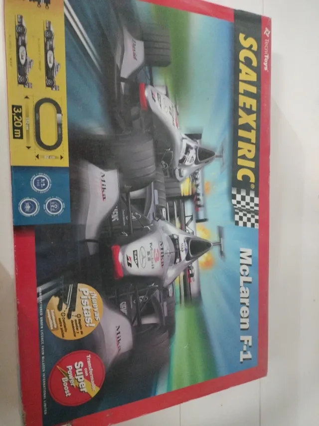 Detalles del productoCircuito de carreras Scalextric McLaren F-1 de TecniToys. Incluye coches y pistas.