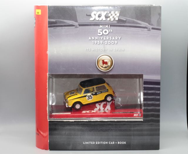 Detalles del productoEdición Limitada conmemorativa de los 50 años del Mini, con libro explicativo tanto de la historia del Mini real como del Mini de Scalextric. El coche es como los antiguos de Exin, pero con luces delanteras e imán. El estuche de cartón tiene una pequeña raja en la parte trasera. El coche está sin usar.