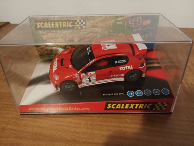 Detalles del productoEspectacular coche Scalextric Peugeot 206 WRC del Rally de Montecarlo en perfecto estado. Llanta negra. Se encuentra en su caja original.