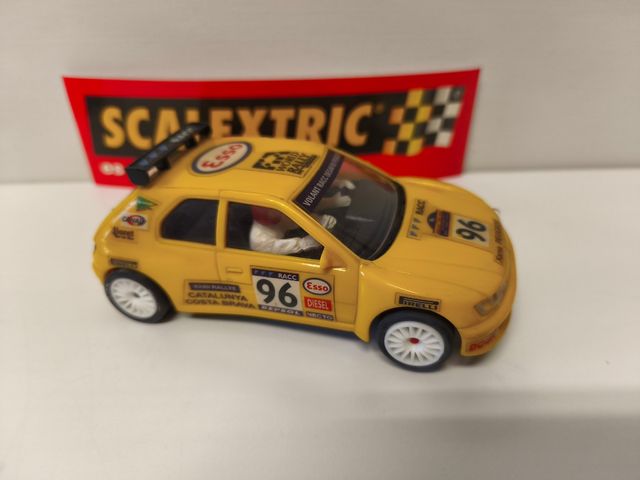Detalles del productoEspectacular coche de Scalextric, réplica del Peugeot que compitió en el Rallye de Catalunya de 1996. - Escala 1:32. - Perfecto estado de conservación. - Incluye el coche tal y como se ve en las fotos.