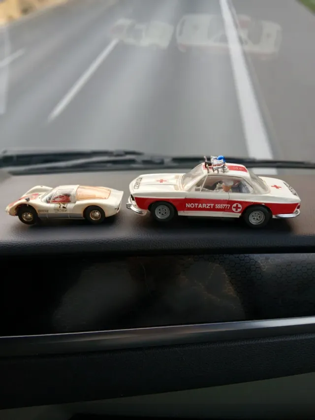 Dos coches de slot Scalextric. - Modelo Porsche 908/3. - Modelo de coche de policía con Notarzt 555777. Vendo la dos o separados