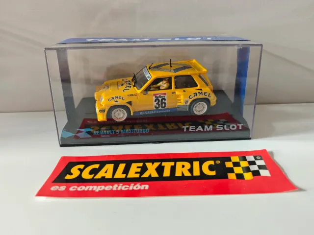 Coche de slot Scalextric Renault 5 Maxiturbo canarias del equipo Team Slot. Mas coches en mi perfil - Decoración Camel y Marlboro. - Número de dorsal 36.