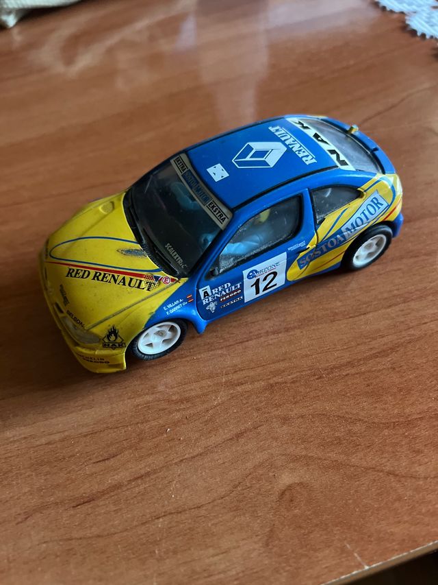 Detalles del productoCoche de Scalextric del Renault Maxi Megane de rally. Modelo con decoración deportiva.
