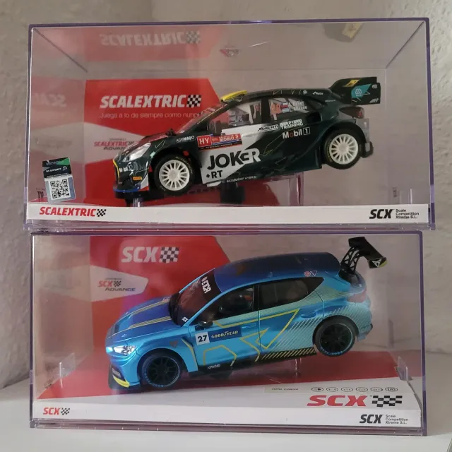 Dos coches de Scalextric SCX de competición. - Ford Puma - Cupra e-Racer