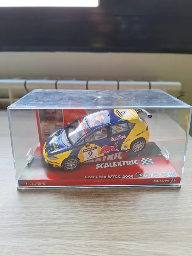 Coche de Scalextric del Seat León WTCC de 2006. - Modelo: Seat León WTCC 2006. - Marca: Scalextric. - Presentado en su caja expositora.