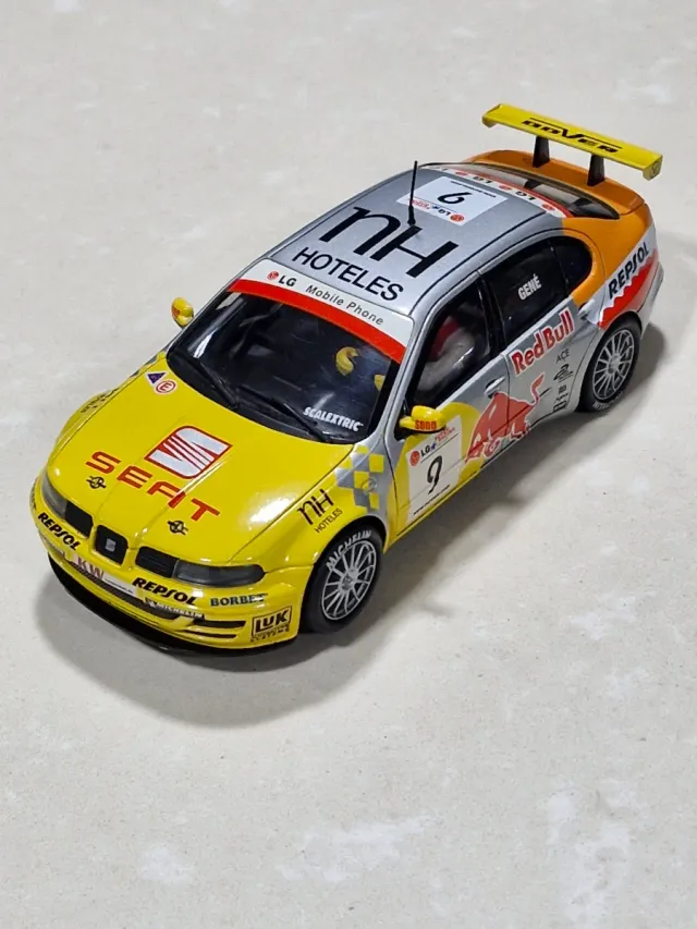 Detalles del productoCoche de slot Scalextric SEAT NH HOTELES con decoración Red Bull.