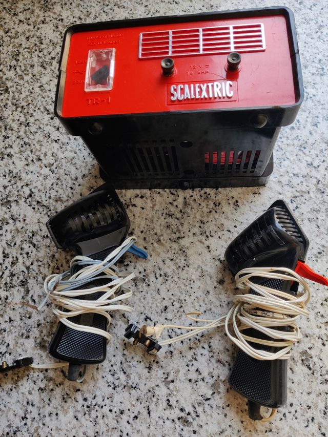 Detalles del productoSe venden transformador y mandos Scalextric TR-1. Están en buen estado, aunque algo usados.