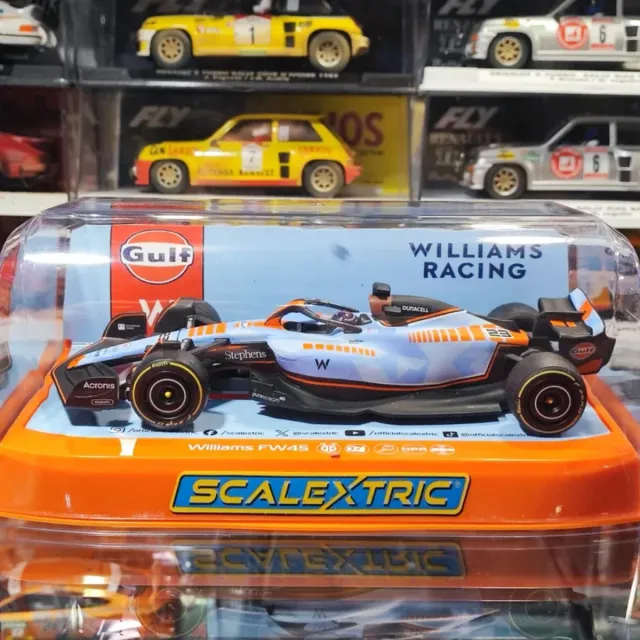 Detalles del productoVendo coche de Scalextric UK Williams FW45 Alexander Albon 2023 Gulf Edition, referencia C4559.