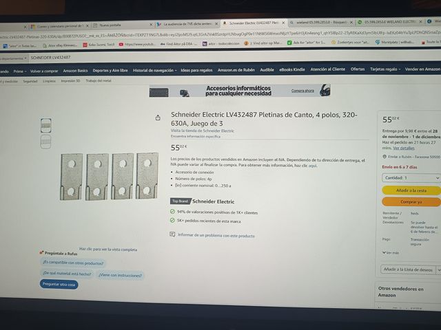 Detalles del productoJuego de 3 pletinas de canto Schneider Electric modelo LV432487, nuevas sin uso.
