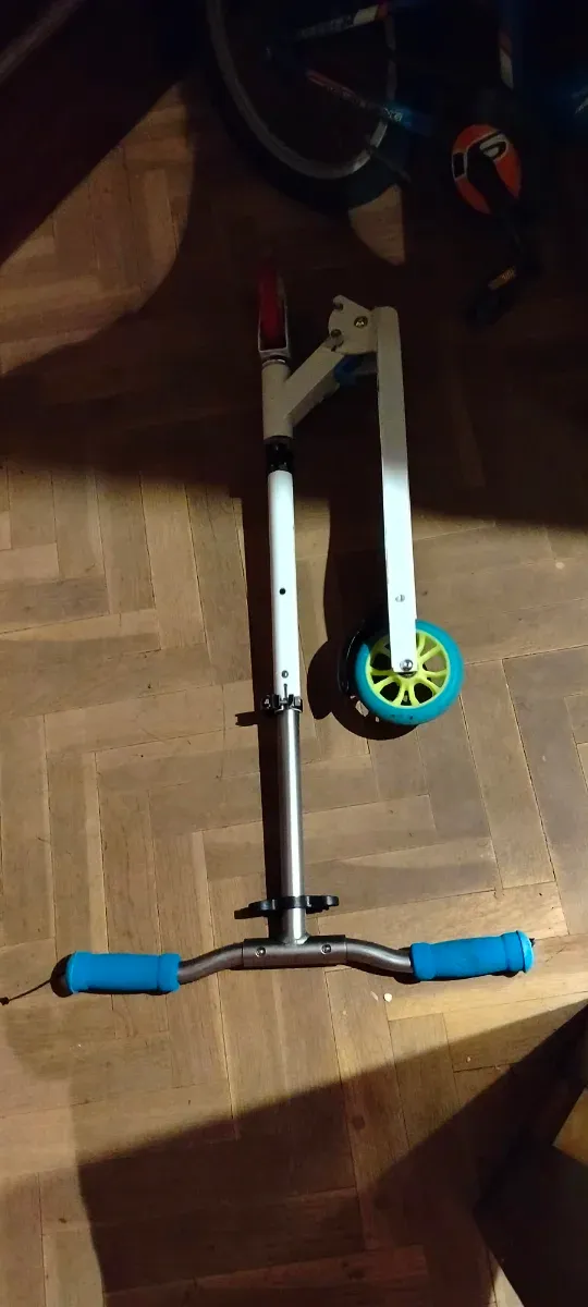 Lote de artículos de segunda mano.- Scooter con ruedas azules y manillar.-