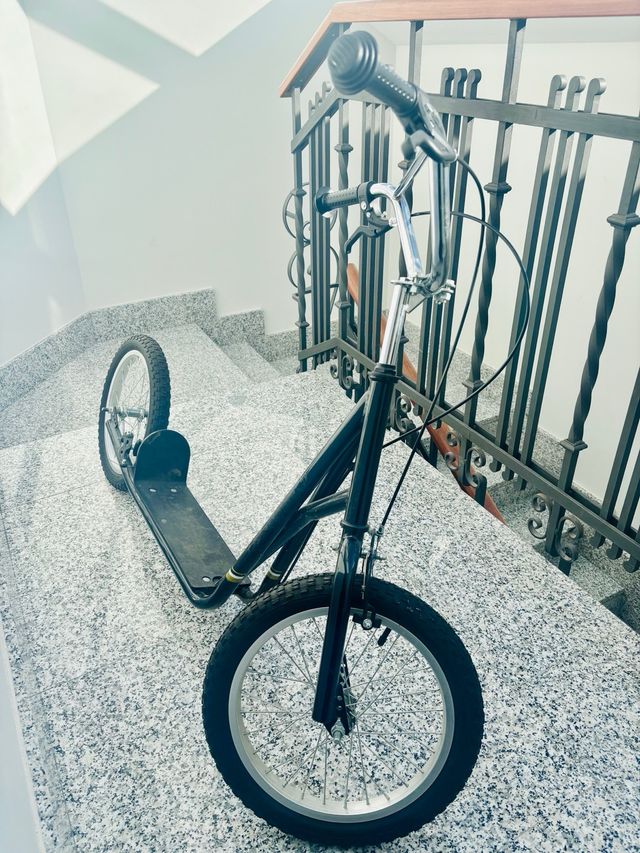 Detalles del productoPatinete tipo bicicleta en color negro. Ideal para desplazamientos urbanos.