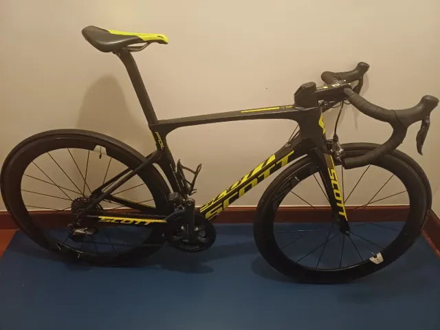 Detalles del productoBicicleta de carretera Scott Foil Aero con un diseño aerodinámico y llamativo.