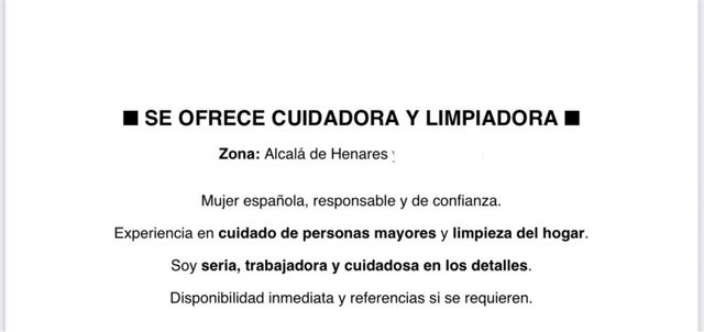 Detalles del productoSE OFRECE CUIDADORA Y LIMPIADORA