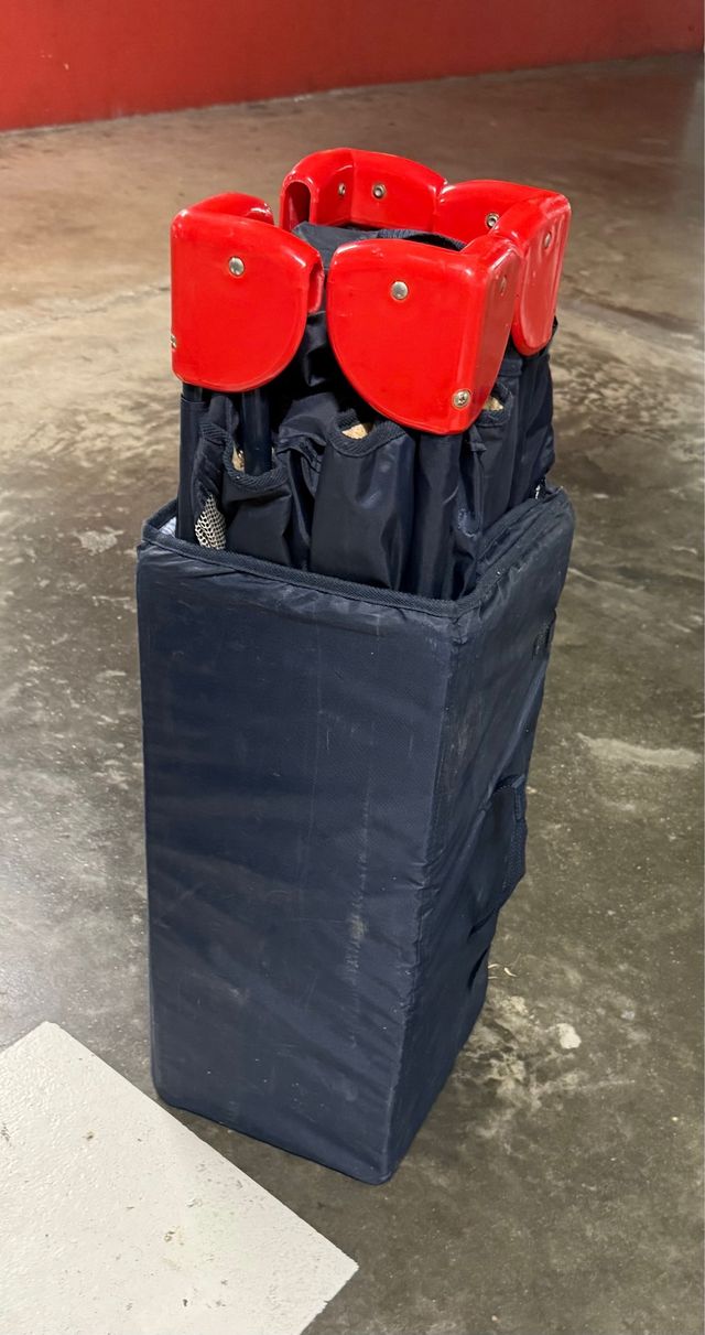 Se vende cuña de viaje en perfecto estado - Color azul marino. - Estructura con soportes rojos.