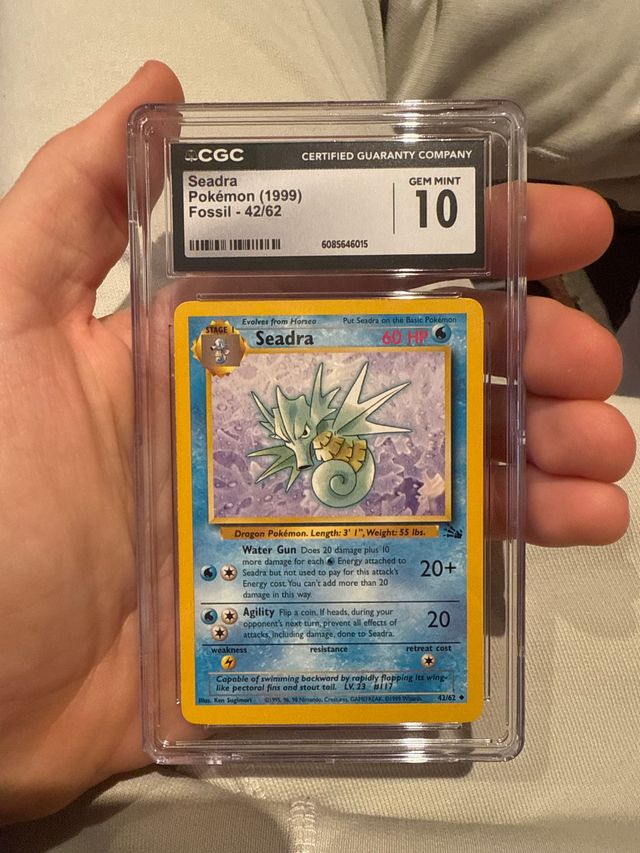 Detalles del productoCarta Pokémon Seadra, edición Fossil de 1999, con calificación Gem Mint 10 de CGC.