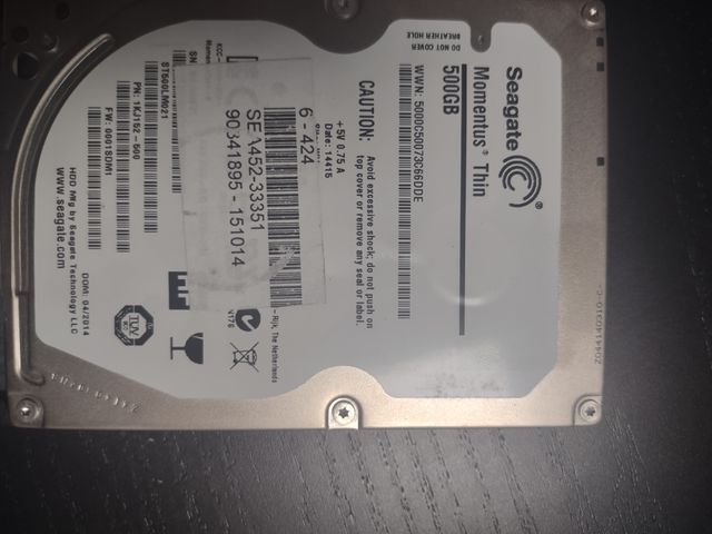 Disco duro Seagate Momentus Thin de 500 GB. Se encuentra en buen estado. - Capacidad de 500 GB. - Formato de 2.5 pulgadas. - Modelo Momentus Thin.