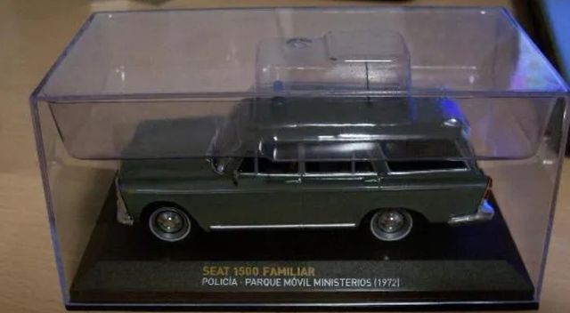 Detalles del productoPreciosa maqueta de un SEAT 1500 Familiar a escala 1/43. Se trata de una réplica de un coche de policía del Parque Móvil Ministerios (1972). - Incluye la maqueta en su vitrina protectora de plástico transparente. - La miniatura está en muy buen estado, sin daños visibles. - Perfecta para coleccionistas de coches en miniatura o amantes de los vehículos clásicos españoles.