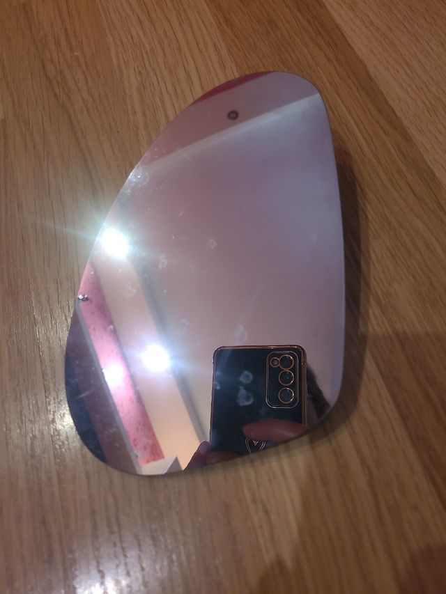 Detalles del productoPreciosa pieza de espejo retrovisor para coche. Se encuentra en buen estado, aunque presenta algunas pequeñas marcas.