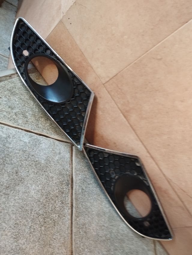 Detalles del productoSEAT León 2006/12, juego de rejillas de la parte inferior del paragolpes, para alojar los faros de niebla. En estado aceptable. El cromado tiene pequeñas marcas. Los dos.