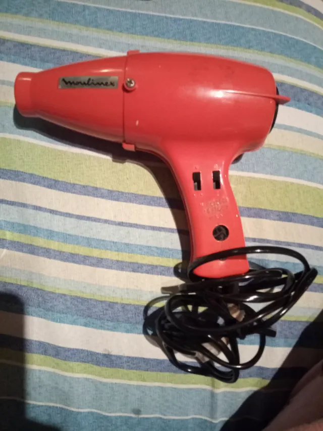 Secador de pelo Moulinex vintage en color rojo , años 80. Un clásico para el cuidado del cabello. - Funcionando - Diseño retro. - Marca Moulinex.