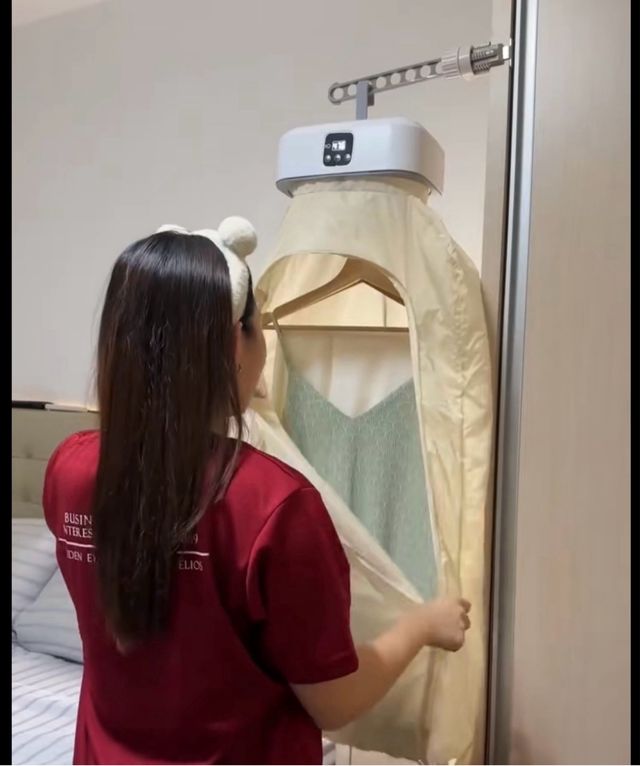 Detalles del productoSecador de ropa portátil, ideal para usar durante el invierno. Permite colgar la ropa en perchas para un secado eficiente.