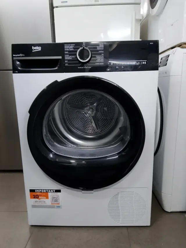 Detalles del productoSecadora de carga frontal Beko con capacidad de 8kg y clasificación energética A+++. Su diseño moderno en color blanco y negro se adapta a cualquier hogar.