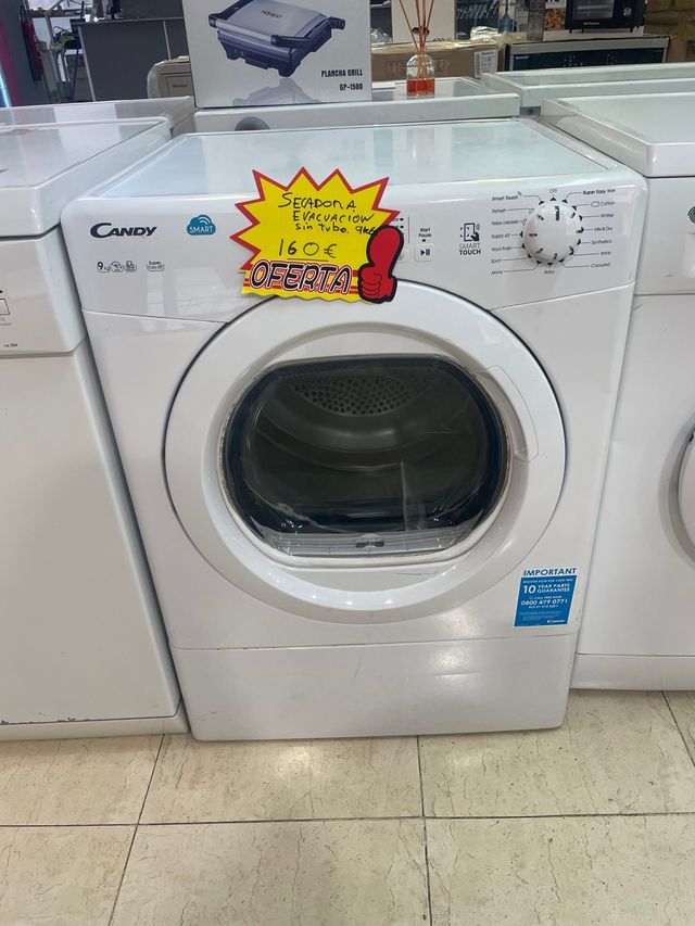 Secadora Candy de evacuación con capacidad de 9kg. - Modelo: Candy - Capacidad: 9 kg - Tipo: Evacuación (sin tubo) - Precio: 160€ - Estado: Oferta
