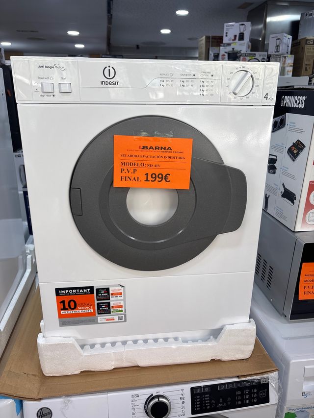 Detalles del productoSecadora de evacuación Indesit con capacidad de 4kg.