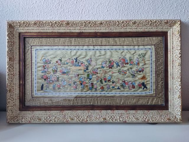 SEDA CHINA BORDADA VINTAGE - 100 NIÑOS JUGANDO