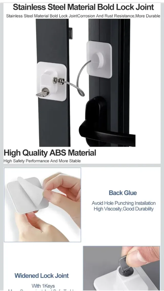Detalles del productoEste limitador de cerradura está diseñado para añadir seguridad a tus ventanas y puertas. Fabricado con acero inoxidable y material ABS de alta calidad, ofrece resistencia a la corrosión y al óxido.