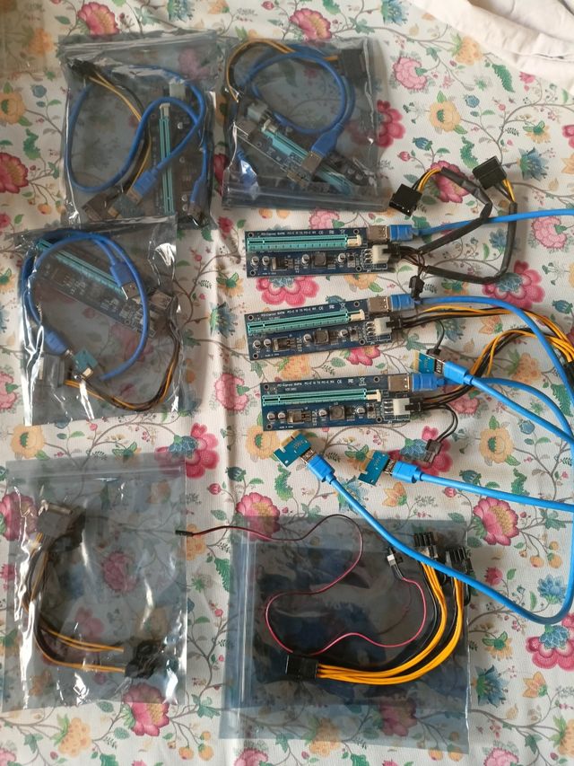 Seis PCIe Risers X1 a X16 + cables. CASI NUEVOS.