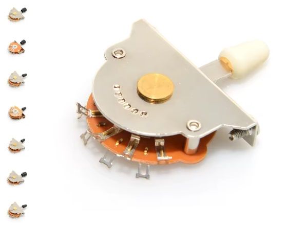 Detalles del productoSelector de 5 posiciones con capucha blanca, posibilidad de capucha de negra o crema, selector, de calidad, bien construido y buenos contactos.
