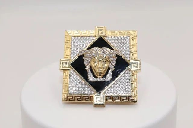 SELLO CUADRADO GRECA MEDUSA ONIX Y CIRCONITAS