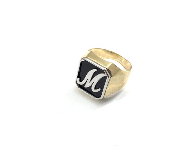 sello oro 9k con piedra con onix