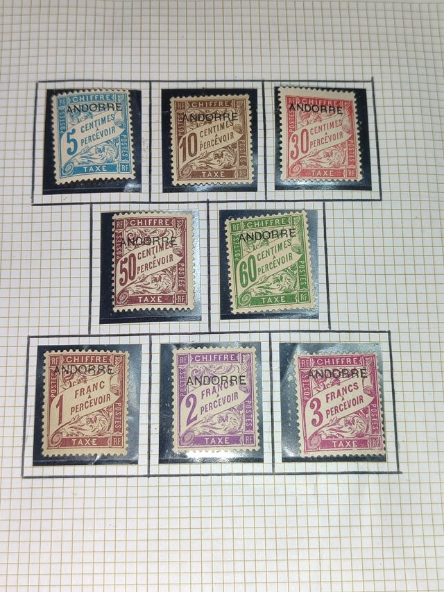 Detalles del productoConjunto de sellos de Andorra con valor en francos y céntimos.