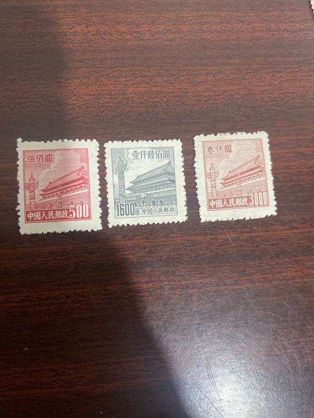 Detalles del productoConjunto de tres sellos postales chinos con diferentes valores.