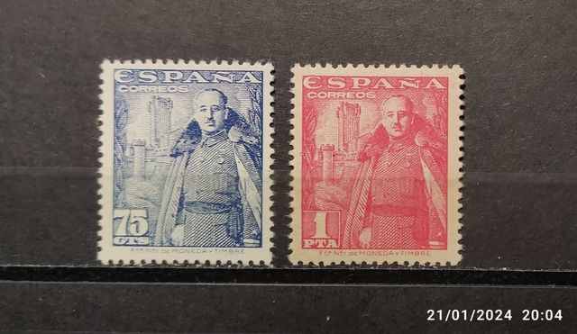 Detalles del productoDos valores sueltos de la serie de 1948 al 54 del general Franco y el castillo de la Mota. Precio por separado: el peseta rosa 6 euros el 75 céntimos 2 euros. Nuevos sin charnela.