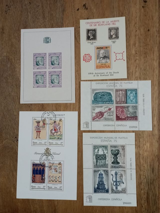 Detalles del productoSe venden cinco hojas de sellos de España. Son bonitas y están en buen estado.