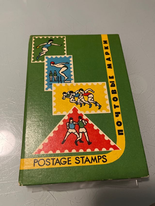Colección de sellos postales. ESCUCHO OFERTAS - Diseño con ilustraciones de atletas en diversas disciplinas. - Incluye texto en ruso ПОЧТОВЫЕ МАРКИ y en inglés POSTAGE STAMPS.