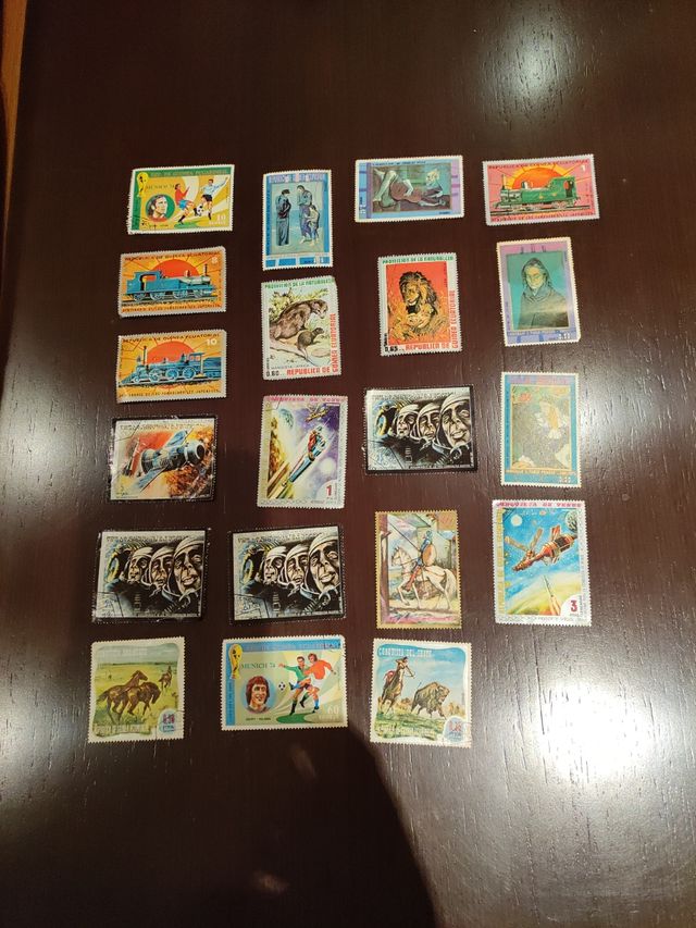 Son de diferentes motivos: copa del mundo Munich 1974, la conquista del oeste, la conquista espacial ,centenario ferrocarriles japoneses, homenaje Pablo Picasso,...Son 21 en total y están en buen estado.