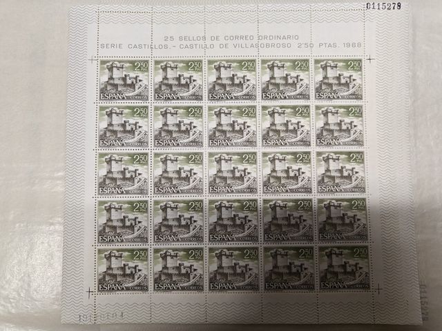 Serie completa de Castillos del año 1968 en bloques de 25 sellos. Se hacen envíos tanto por agencia como por Wallapop