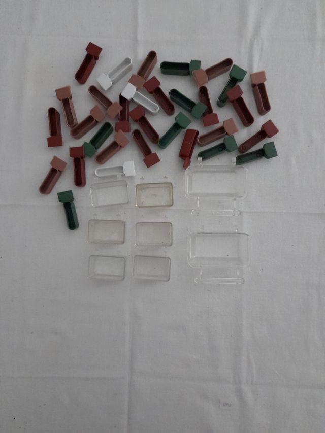 Conjunto de semilleros tipo jaula. - Piezas de plástico en varios colores: marrón, verde y blanco. - Incluye tapas transparentes.