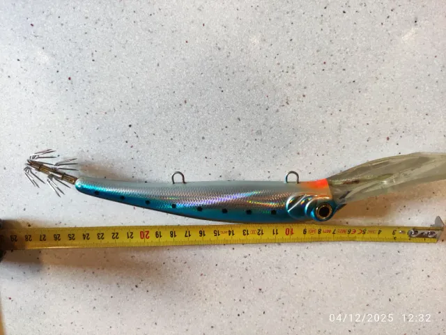 Detalles del productoSeñuelo de pesca con forma de calamar, ideal para la pesca deportiva.