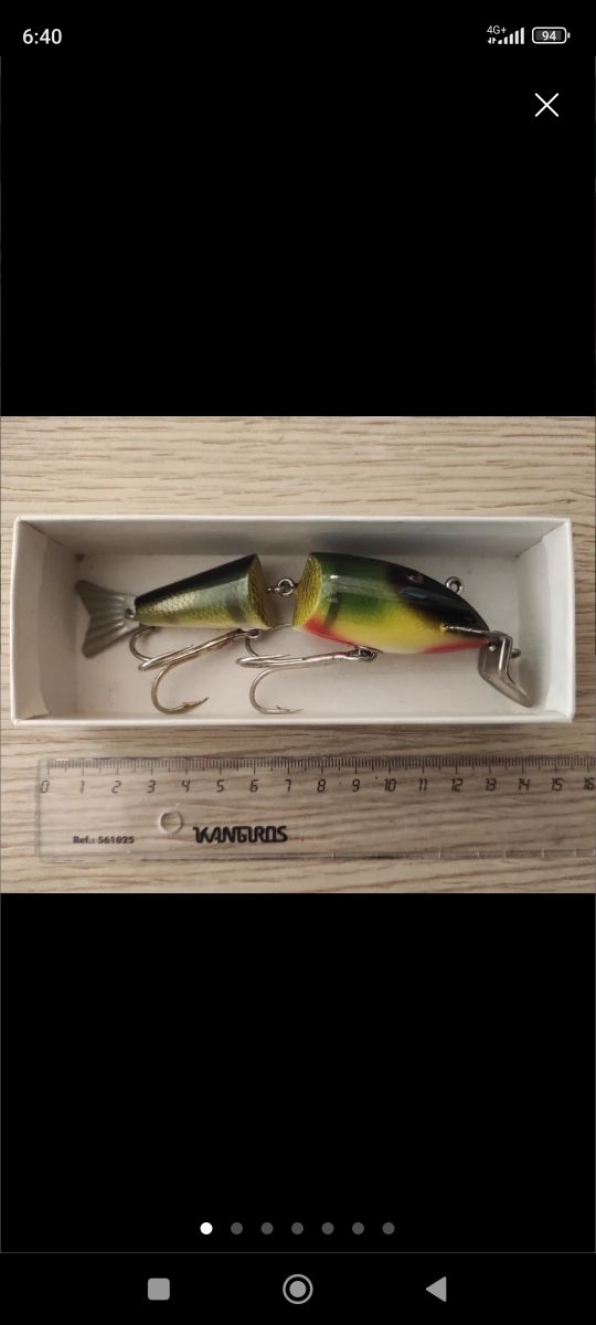 Detalles del productoSeñuelo Wiggle Fish con caja original , réplica de 1932 del record de captura de un Bass de 22 libras y 4 onzas, por George Perry, pescado en Georgia en el lago Montgomery.